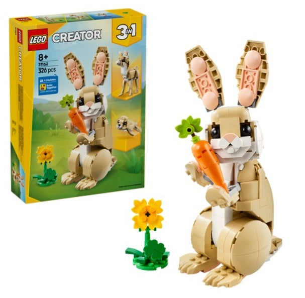 Let animal-loving kids enjoy fun adventures with this LEGO Creator 3in1 Cute Bunny (31162) building set. The animal playset features a bunny toy for 8 plus year old girls and boys, with a posable head, ears and legs, which can stand on either 2 or 4 legs, and comes with a sunflower and a carrot.