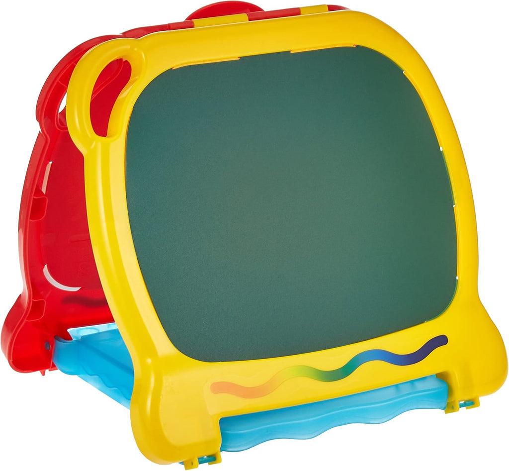 - 2-in-1 Creative Station: Features a bright magnetic dry-erase board on one side and a classic chalkboard on the other, allowing two children to draw at once.
