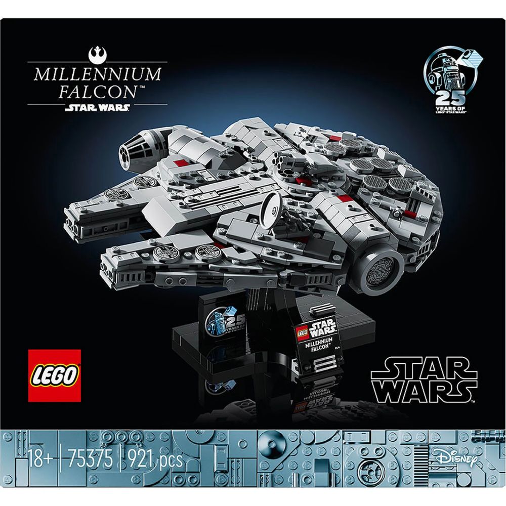 Made for display – The buildable stand has a nameplate and LEGO Star Wars 25th Anniversary brick, it’s also designed to display the Millennium Falcon at a dynamic angle for a perfect home décor centerpiece