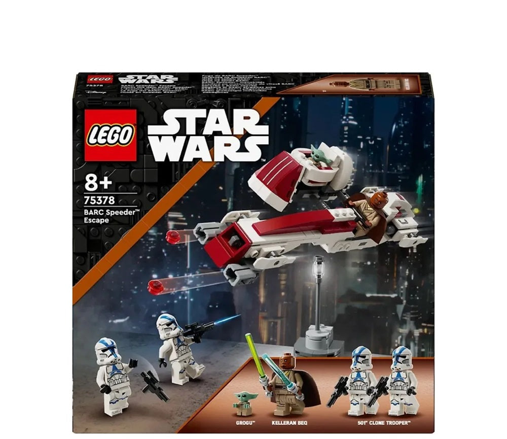 • LEGO Star Wars BARC speeder with sidecar – Star Wars: The Mandalorian fans can recreate the daring BARC Speeder escape flashback scene from Season 3 with this building set