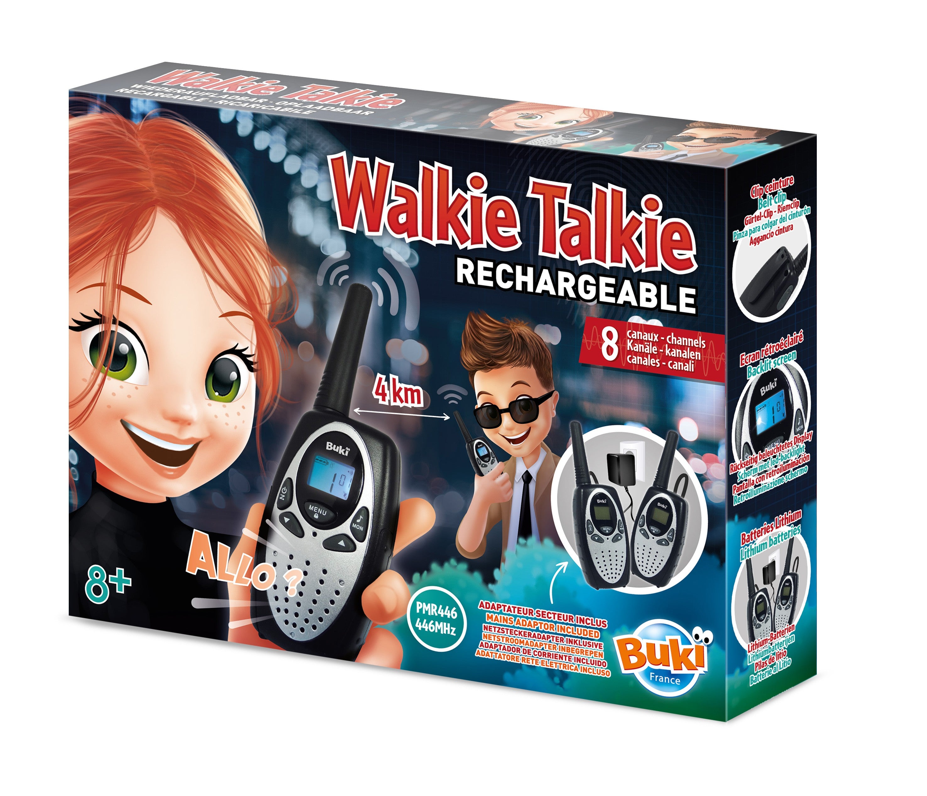 Explore the world using rechargeable walkie-talkies with a range of 4 km.